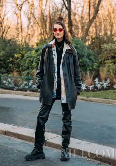 秀场外,时尚博主们也纷纷把领子翻了出来,搭配精致的粗花呢夹克,又展现出优雅复古的另一番味道。